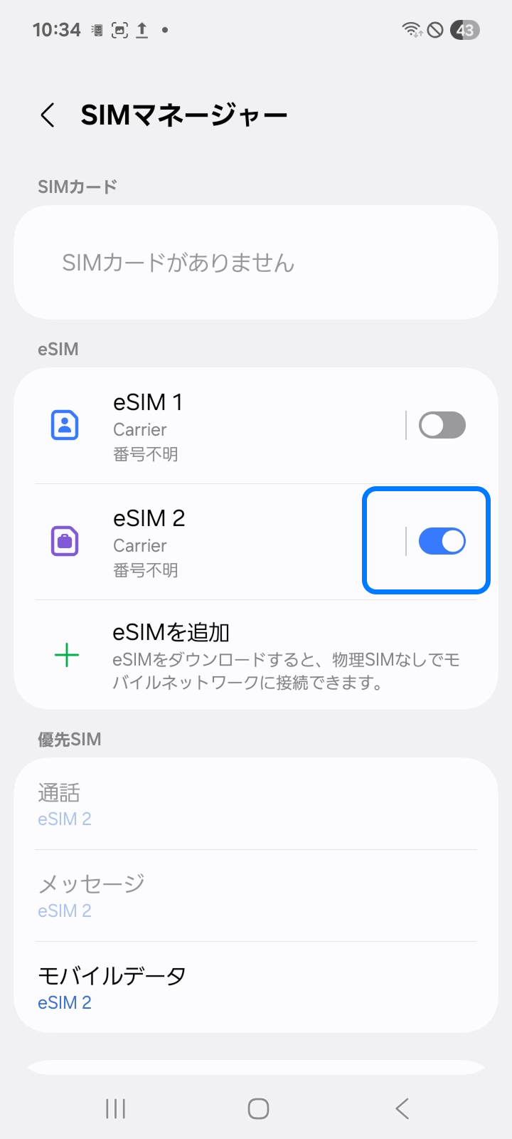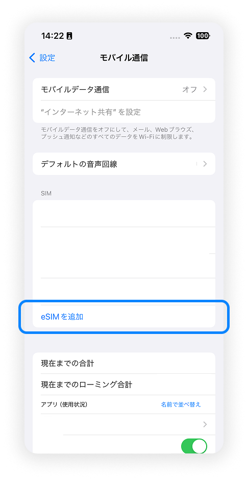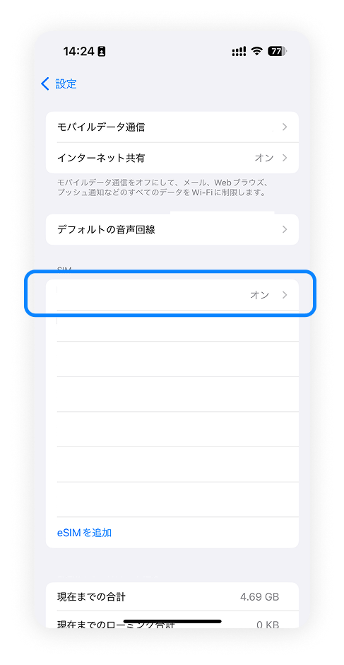 7. 開通したeSIMをオンにする
