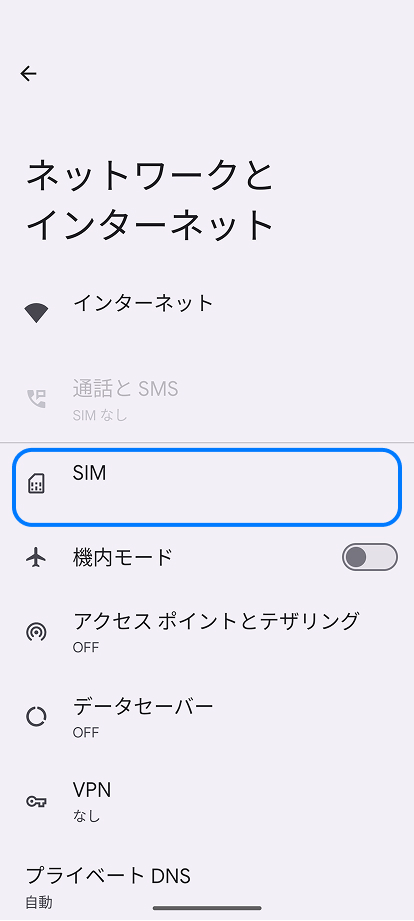 2.「SIM」を選択