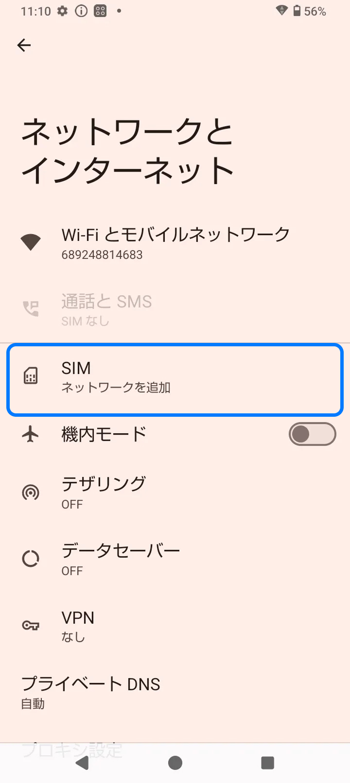 3. 「SIMの追加」をタップ