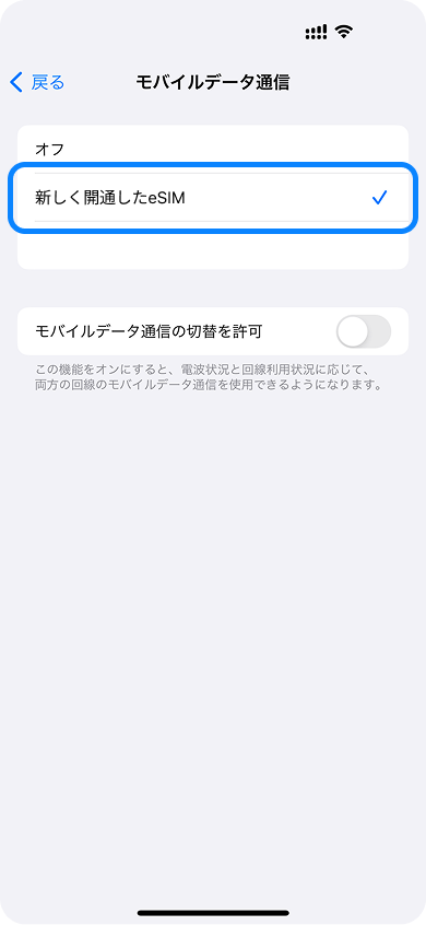 9. 開通したeSIMを選択する