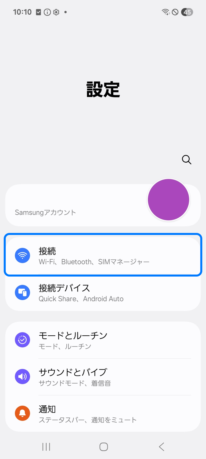 1. 設定アプリを開いて「接続」を開く