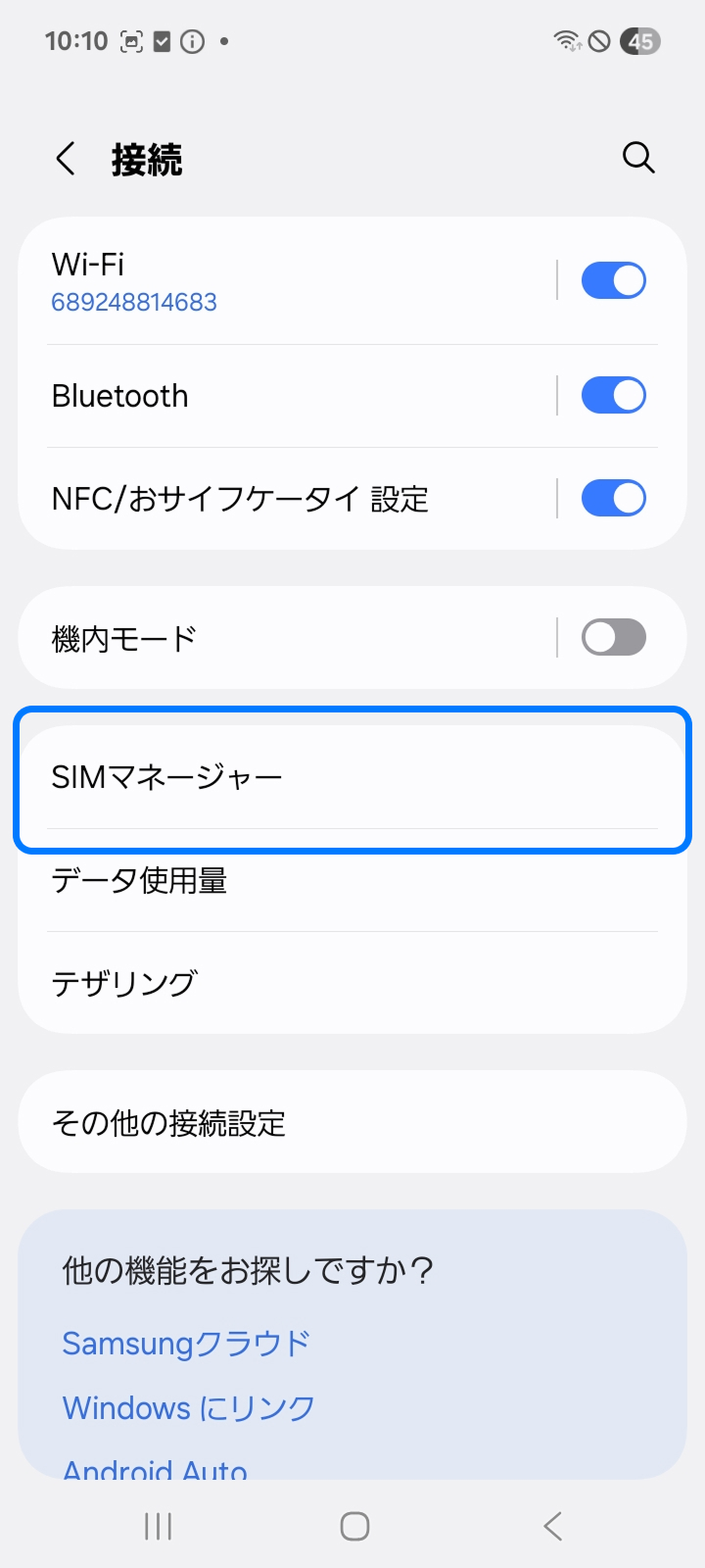 2.「SIMマネージャー」を選択