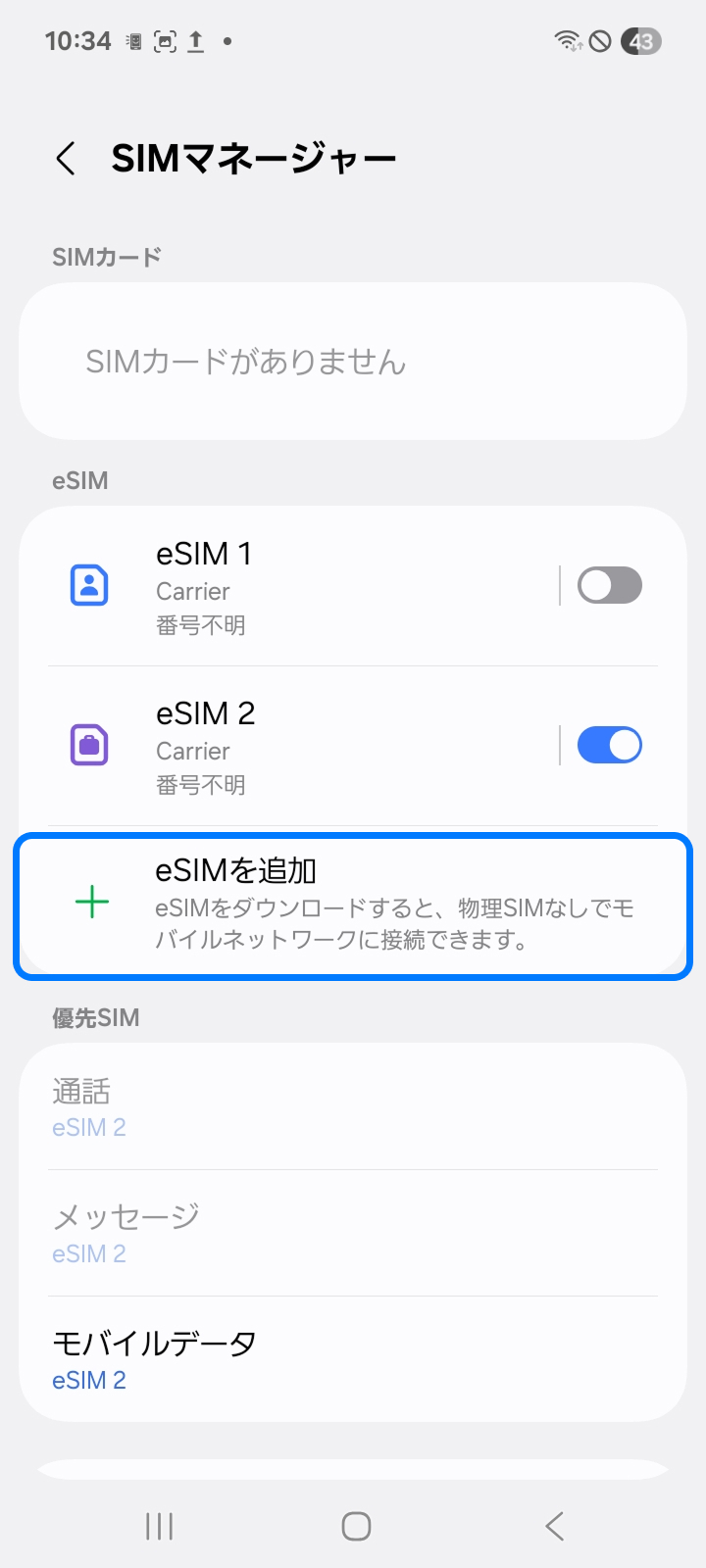 2. 「eSIMを追加」をタップ